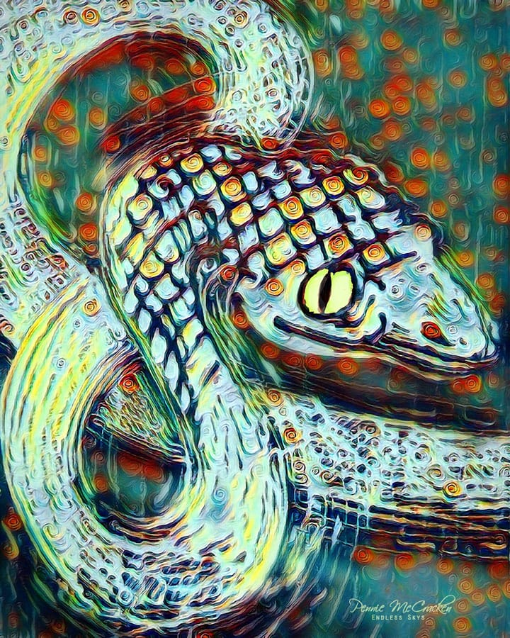 As I was creating the above artwork, I thought to myself is this a Serpent or a Snake. I realized then, that I did not know what the difference was between the two, if indeed there was any. I have always thought of serpents as being massive and powerful creatures, but that is probably due to historical references like Jormungand, the powerful sea serpent.