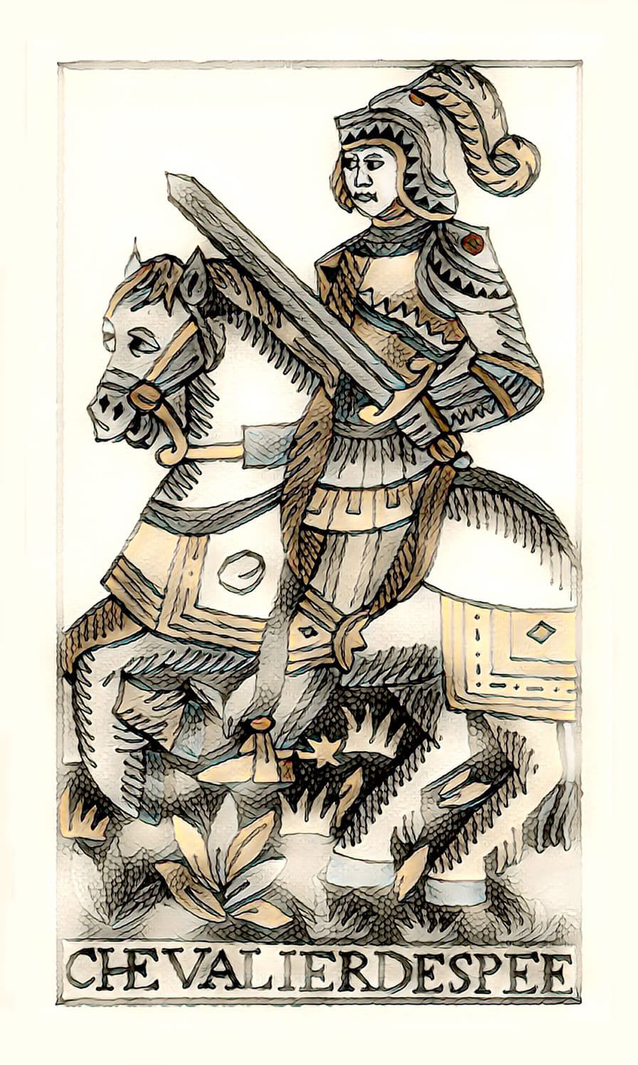 I love bringing history back to life so if you are a tarot reader or psychic who appreciates the history of the tarot, this could be a deck for you. I created my images with a vintage “distressed” look, for two reasons…a different appearance to other decks and as an acknowledgement of the age of their original design. I kept the authenticity of the imagery, down to the minor details, intact; but I created them in the original tarot size of today. You can see a comparison to size and look in the image on the left. I would like to acknowledge and thank the Flornoy estate for allowing me to use the Letarot Noblet images as the source for my creation of the artwork designs for this deck.
